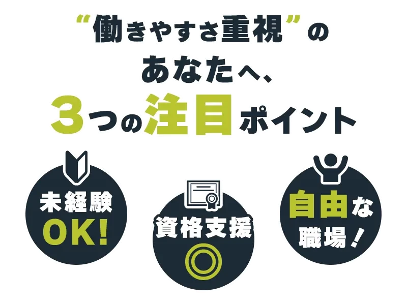未経験の方も安心してチャレンジできるよう、体験入社制度を設けており、実際の現場を見てから入社を決めることができます。